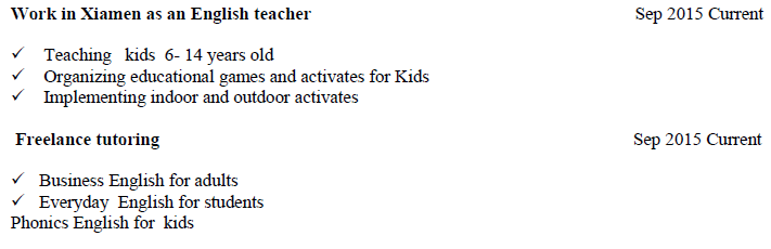國籍: 美國 求職意向: 教師