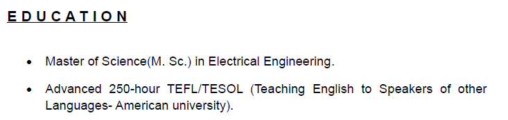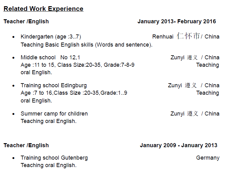 國籍: 美國 求職意向: 教師