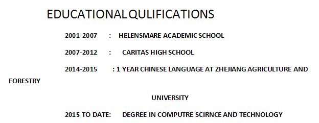 國(guó)籍: 南非       求職意向: 教師