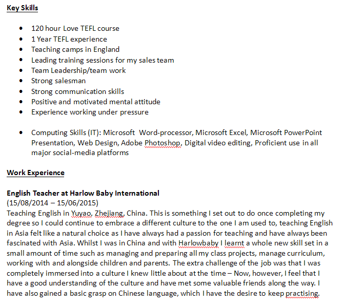 外教的工作經(jīng)歷
