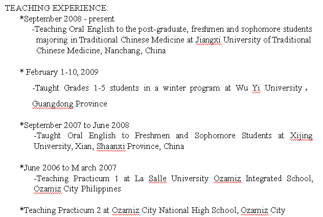 國籍: 美國 求職意向: 教師