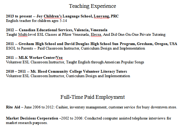 國籍: 美國 求職意向: 教師