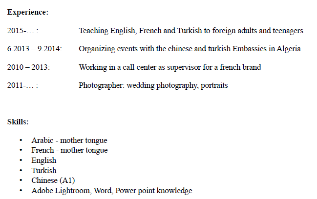 外教的工作經(jīng)歷