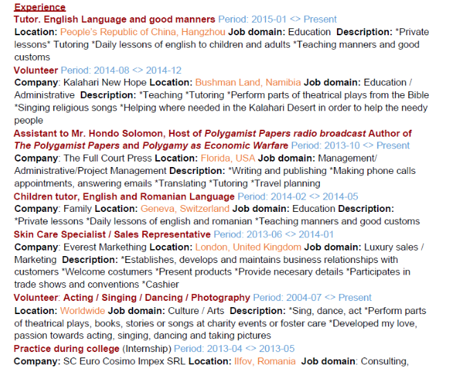 國籍: 南非 求職意向: 教師