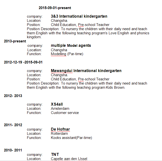 外教的工作經(jīng)歷
