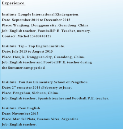 阿根廷外教 現(xiàn)在東莞 2年教學(xué)經(jīng)驗(yàn) 有本科TEFL 不挑地方 幼兒園小學(xué)和培訓(xùn)學(xué)校都可以 |