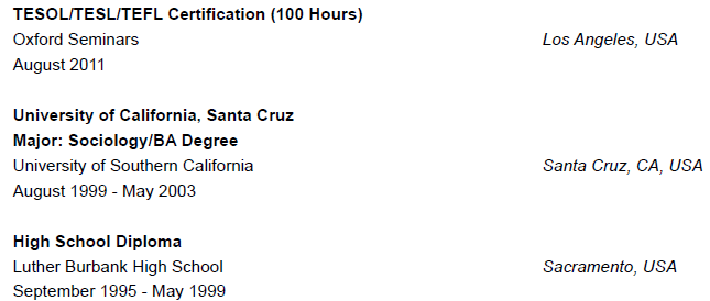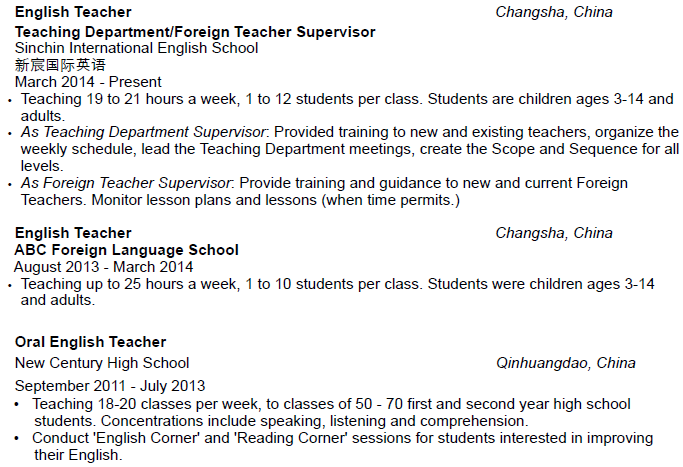 國籍: 美國 求職意向: 教師