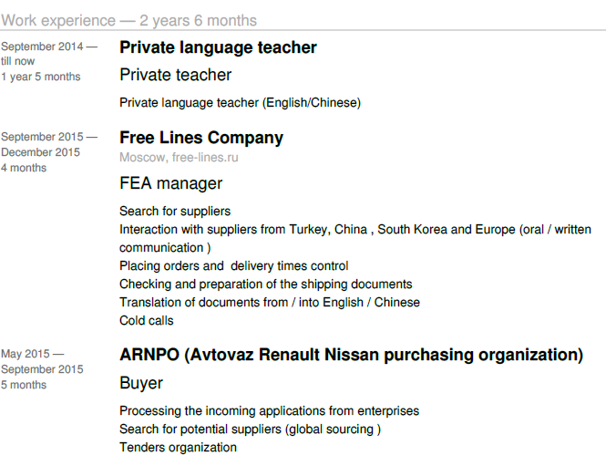 外教的工作經(jīng)歷