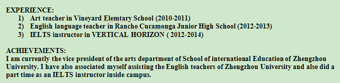 國(guó)籍: 美國(guó) 求職意向: 教師