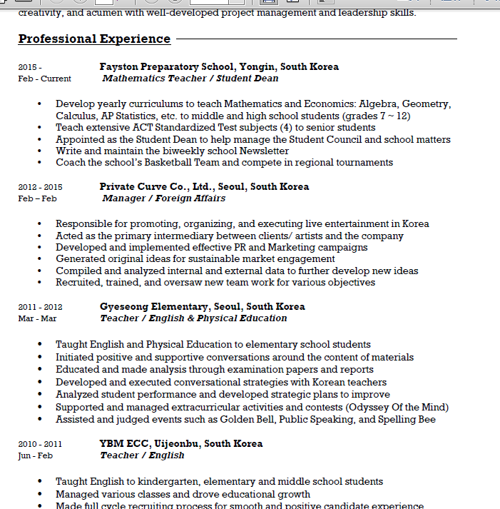 外教的工作經(jīng)歷