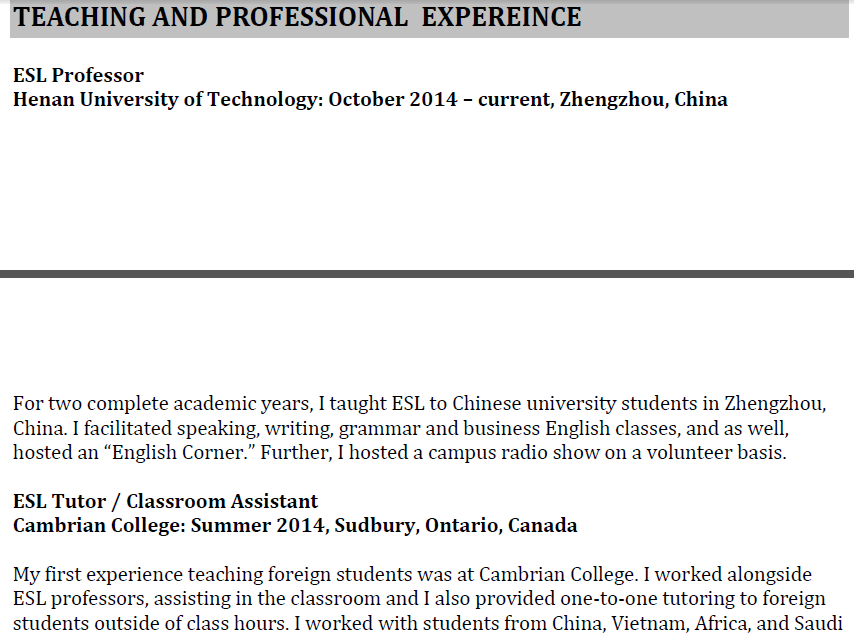 加拿大外教, 本科, 商業(yè)會計(jì)和商務(wù)管理專業(yè),120小時TEFL, 有國內(nèi)大學(xué)和高中的教學(xué)經(jīng)驗(yàn)。求職16年9月份的職位。 |