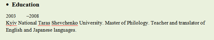 國籍: 美國 求職意向: 教師