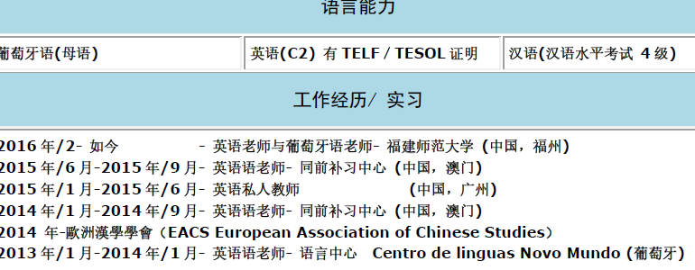 國籍: 新西蘭 求職意向: 教師