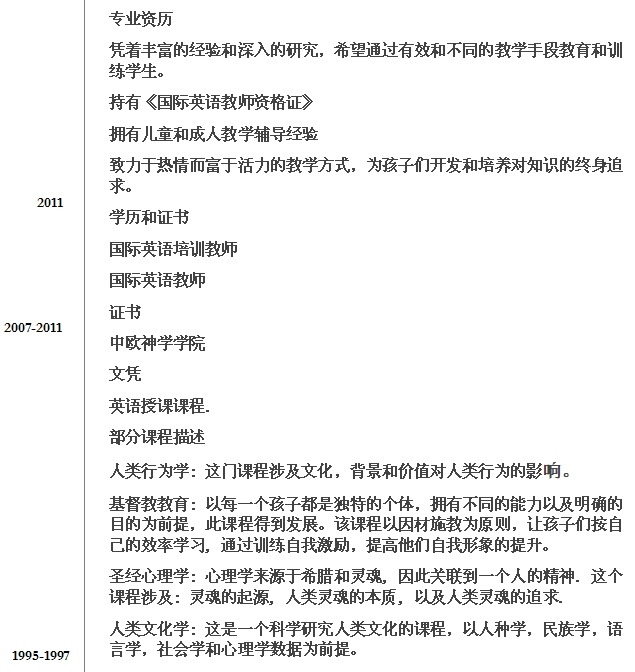 國籍: 美國       求職意向: 教師