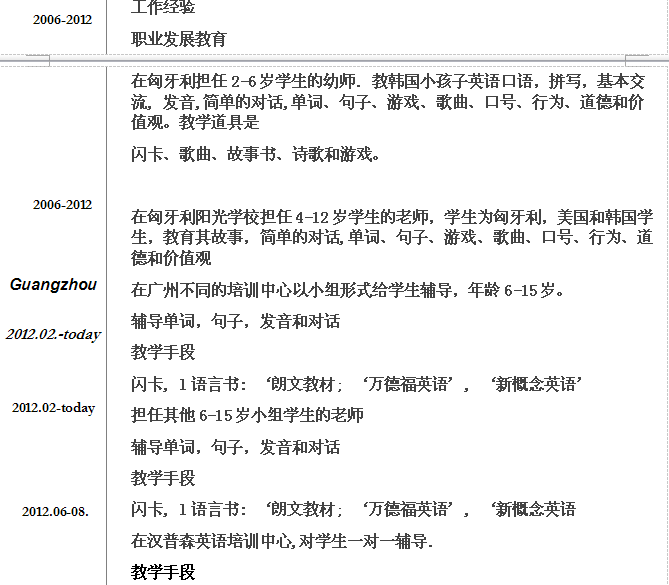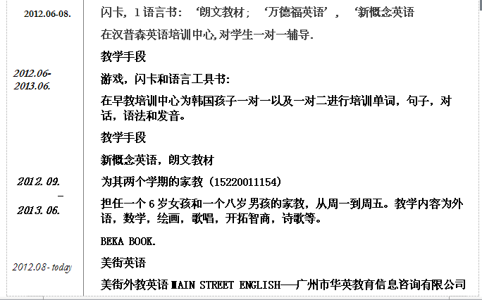 外教的工作經歷