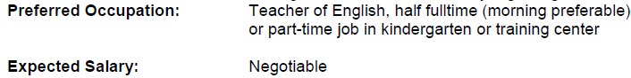 國籍: 南非 求職意向: 教師