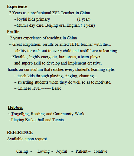 國籍: 美國 求職意向: 教師