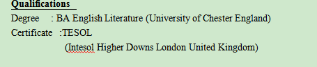 國籍: 南非 求職意向: 教師