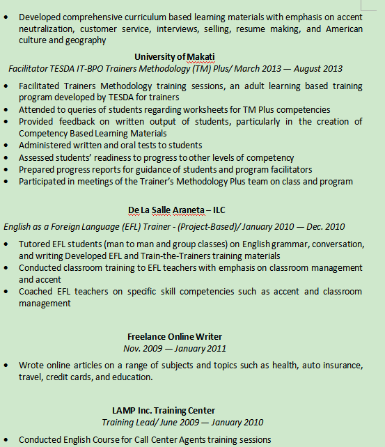 外教的工作經(jīng)歷