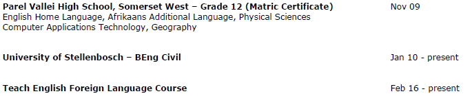 南非,現(xiàn)在本國(guó),正在考TEFL, 可以自己辦簽證先來(lái),之后需要學(xué)校提供簽證,口音很好,有視頻 |