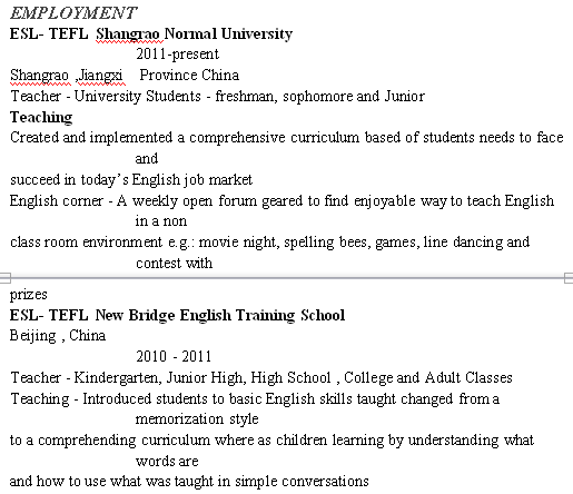 外教的工作經(jīng)歷