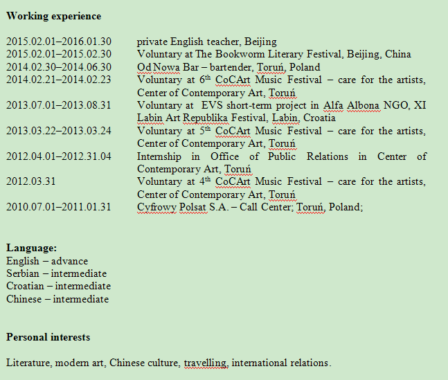 國籍: 新西蘭 求職意向: 教師
