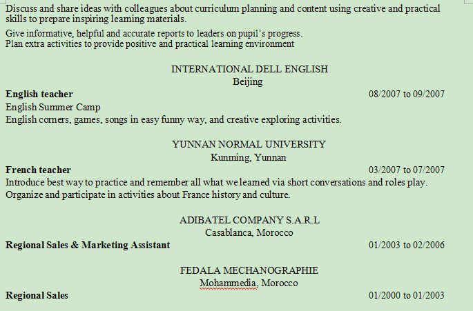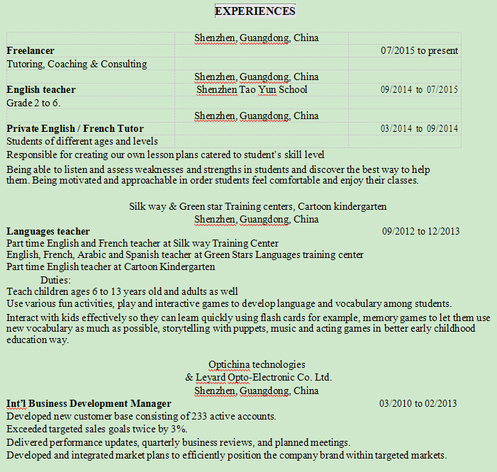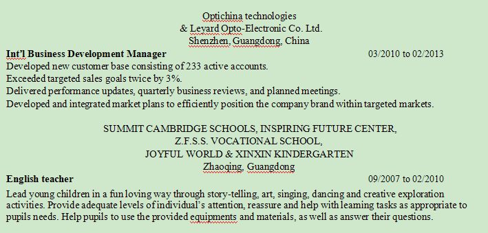 國籍: 美國 求職意向: 教師
