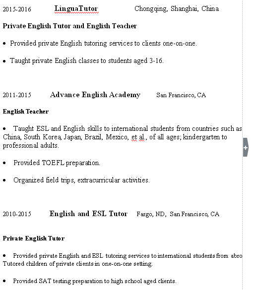 國(guó)籍: 美國(guó) 求職意向: 教師