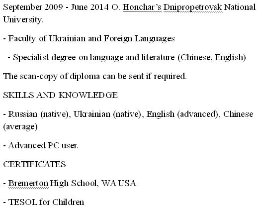 烏克蘭 語言文學(xué)專業(yè) TESOL 在深圳有過1年的教學(xué)經(jīng)驗(yàn) 可以自己辦一年商務(wù)簽來,但是傾向工簽工作 求職深圳 下學(xué)期到崗 |