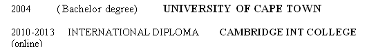 國籍: 南非 求職意向: 教師