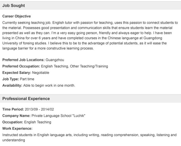 外教有工作經(jīng)驗(yàn),現(xiàn)在廣東廣州,求職兼職工作 |