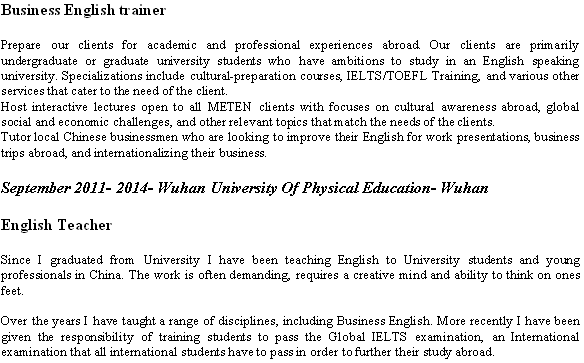 國(guó)籍: 美國(guó) 求職意向: 教師