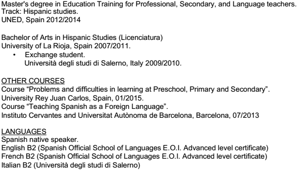 西班牙女碩士 現(xiàn)在本國 求職英語 西班牙語教學(xué)職位 下學(xué)期到崗 |