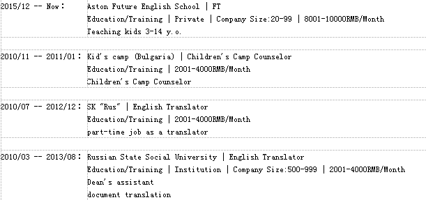 俄羅斯女 在大連 學(xué)生簽 本科 有經(jīng)驗(yàn) 盡快到崗 |