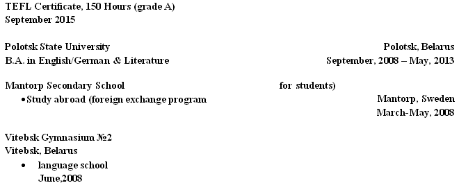 白俄羅斯 本科TEFL 6年經(jīng)驗(yàn) 現(xiàn)在本國(guó) 求職大連 |