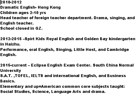 國(guó)籍: 美國(guó) 求職意向: 教師