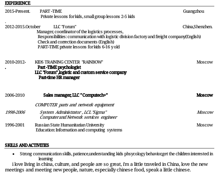 國(guó)籍: 美國(guó)       求職意向: 教師