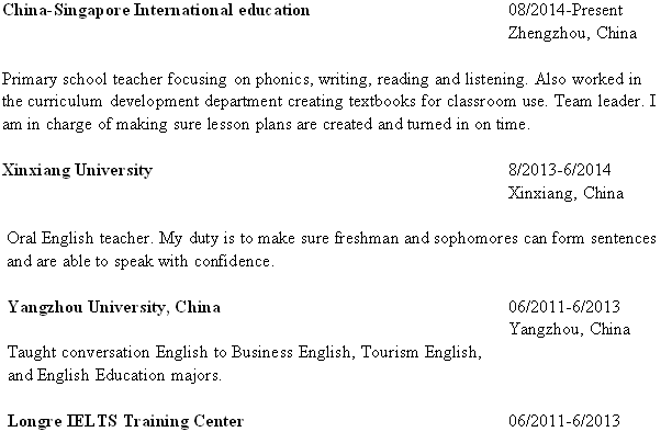 美國碩士 在鄭州 工簽 TEFL 求職珠海小學(xué)職位 下學(xué)期到崗 |