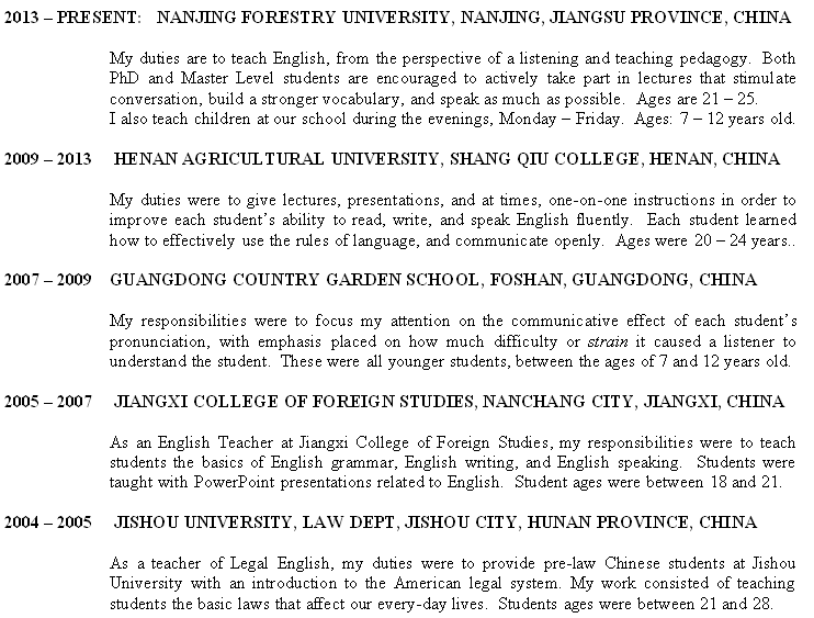 國(guó)籍: 美國(guó) 求職意向: 教師