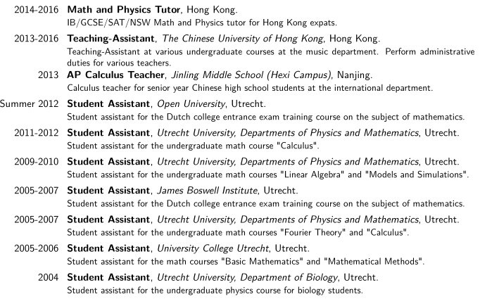 荷蘭華裔 現(xiàn)在香港讀博士 數(shù)學(xué)物理碩士 6年相關(guān)經(jīng)驗(yàn) 求職下學(xué)期數(shù)學(xué)物理職位 |
