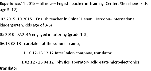 烏克蘭女 現(xiàn)在深圳 暑假回國(guó) 9月份回來(lái) 求職深圳幼兒園 自帶簽證 |