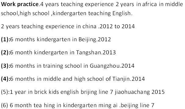 國(guó)籍: 美國(guó) 求職意向: 教師