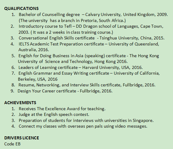 國(guó)籍: 美國(guó) 求職意向: 教師