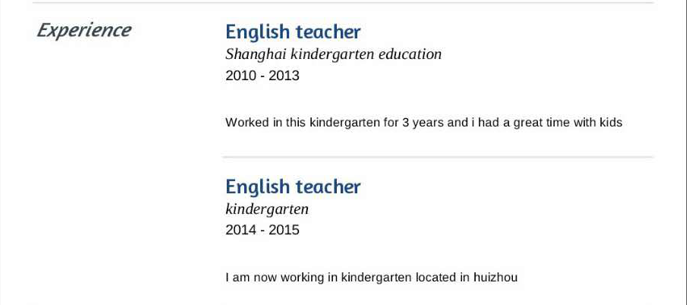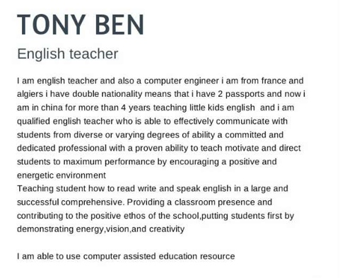 國籍: 美國 求職意向: 教師