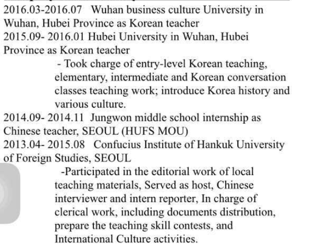 韓國(guó)女 碩士 現(xiàn)在武漢 求職韓語教學(xué)職位 經(jīng)驗(yàn)豐富 |