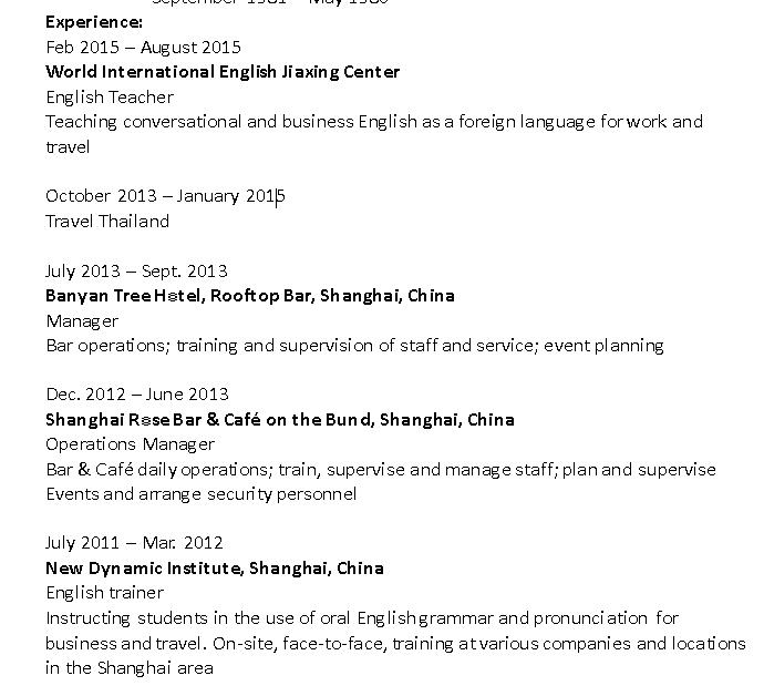 國籍: 美國 求職意向: 教師