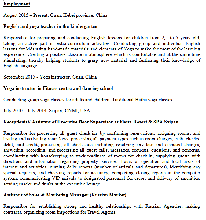 國籍: 美國 求職意向: 教師