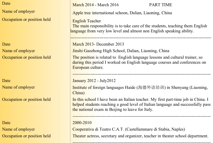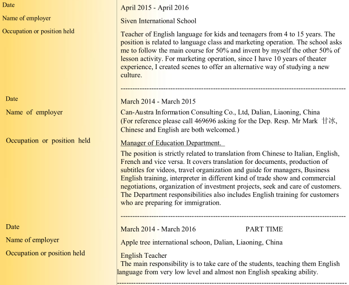 意大利女博士 現(xiàn)在大連 工簽到明年4月份 5年以上教學(xué)經(jīng)驗(yàn) 會(huì)說(shuō)漢語(yǔ)英語(yǔ)法語(yǔ)西班牙語(yǔ) 求職大連可盡量快到崗 |