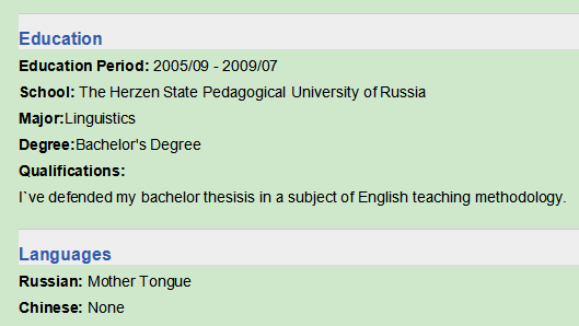 國(guó)籍: 美國(guó) 求職意向: 教師