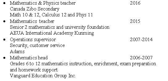 加拿大華裔 旅游簽 求職數(shù)學(xué)職位 盡快到崗 |